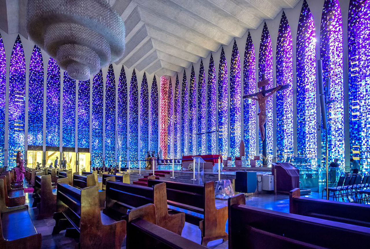 The experience of being in an enclosed space, immediately turns the attention of those inside the space within. It is like closing the eyes, it has the effect of drawing our attention inwards. A sacred space is where we need to listen, where we need to feel and where we need to be still. Glass art, including stained glass, can be a way to create this luminous, but enclosed, space. One which will lift our spirits while at the same time focusing our attention inwards. To create the ideal atmosphere, the glass art should be calming, it should help imbue us with a feeling of peace and, at the same time, of energy, of calm and of resolution.